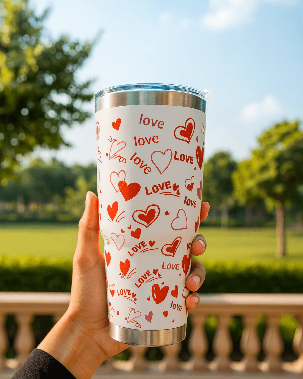 ❤️ Love Print Stainless Steel Travel Tumbler – Sip in Style Anywhere
